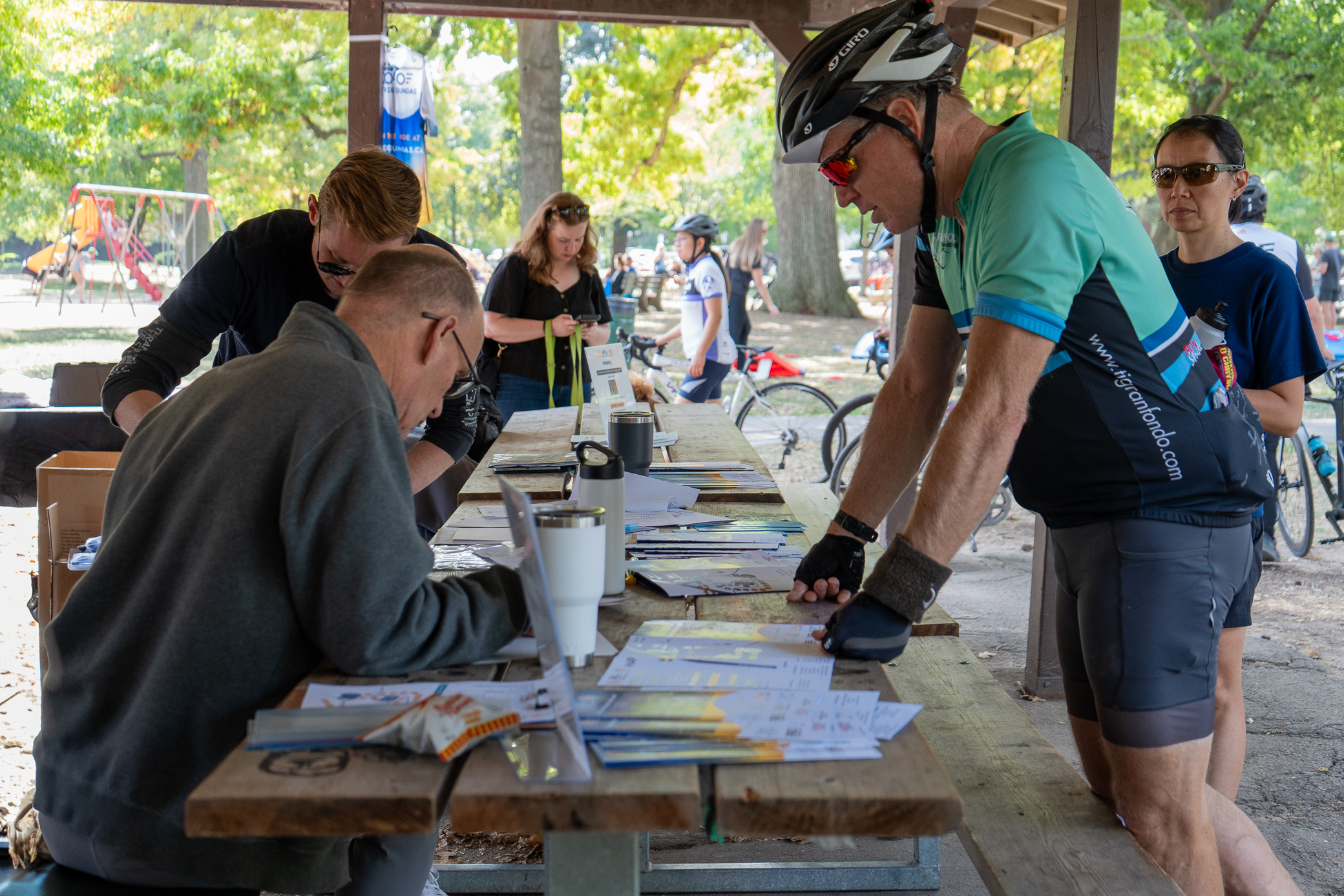 Most people arriving in Dundas after 7:00 am will not be able to park within 800m of the registration desk in the Dundas Driving Park. Allow sufficient time to find a parking spot up to 1 km from the Driving Park, unload and prep your bike, and then ride or walk to the registration desk.